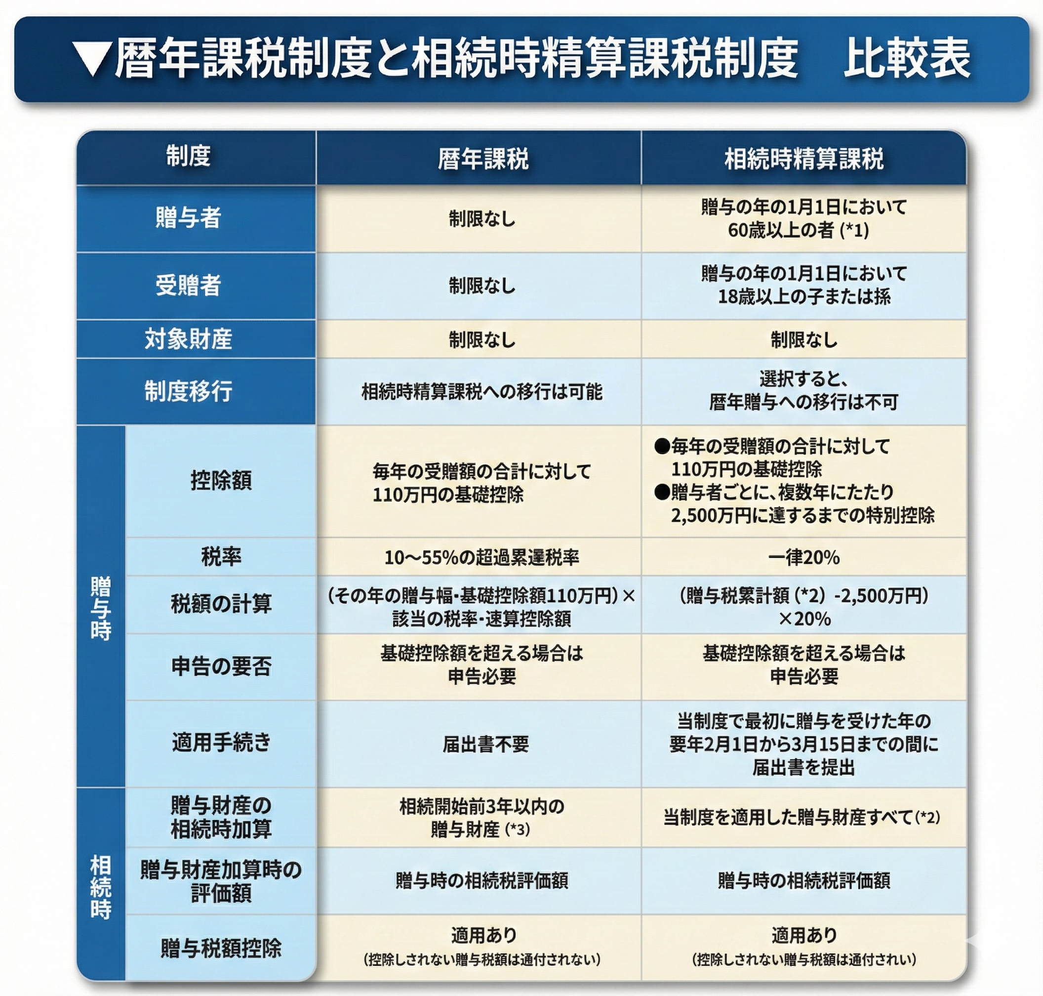 親(60歳以上)から子(20歳以上)へ贈与するときに利用できる制度で、